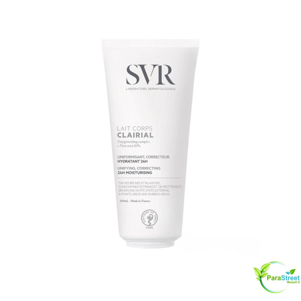 Le SVR Clairial Lait de Corps 200ml est un soin dermatologique spécialement formulé pour corriger les taches pigmentaires et unifier le teint du corps. Grâce à son expertise inspirée des soins dépigmentants du visage, ce lait corporel offre une solution efficace, douce et adaptée à tous les types de peau, même les plus sensibles.